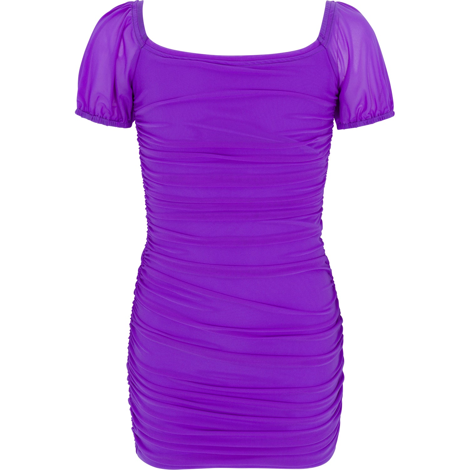 For the girl who loves to make a statement, the Olivia Dress in bold violet is all about confident style. With flattering all-over ruching, playful puff sleeves, and a chic square neckline, it’s the perfect mini for any standout moment.